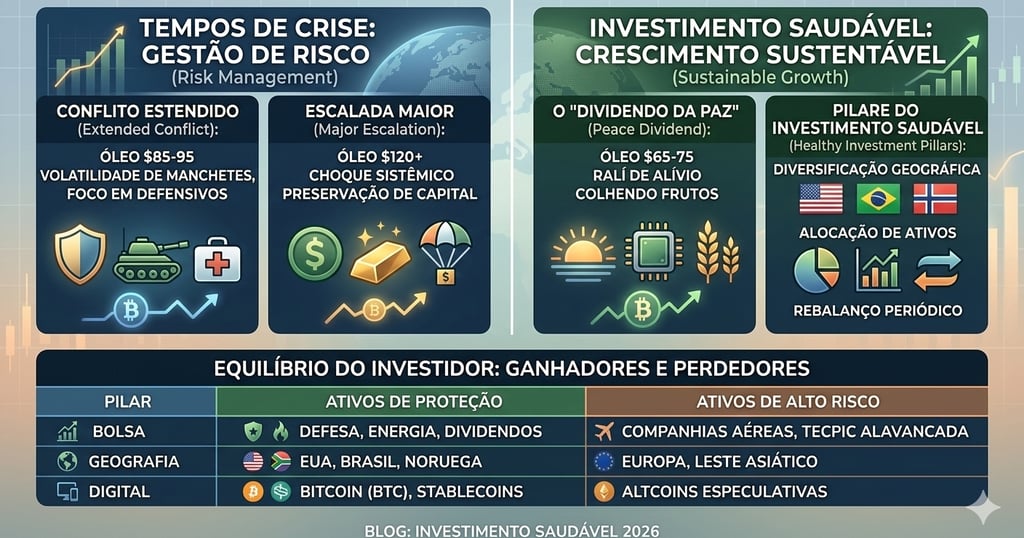 Estratégia Saudável: O foco recai sobre setores defensivos (Defesa, Saúde e Energia). Juridicamente, é o momento de revisar contratos de longo prazo e cláusulas de hardship ou força maior, garantindo que suas posições em empresas de infraestrutura estejam protegidas contra interrupções globais.