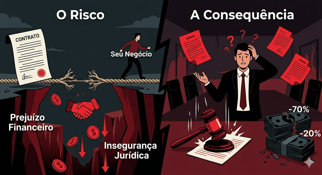 A tentação de usar modelos de contratos genéricos encontrados na internet ou de elaborar o contrato por conta própria para economizar dinheiro é grande. No entanto, o "barato" pode sair extremamente caro no futuro. Um contrato mal feito pode: